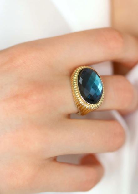 Son volume généreux en fait une bague cocktail idéale pour sublimer toutes vos tenues. Le corps de bague, orné d’un motif godron d’inspiration vintage, apporte une touche d’élégance intemporelle.