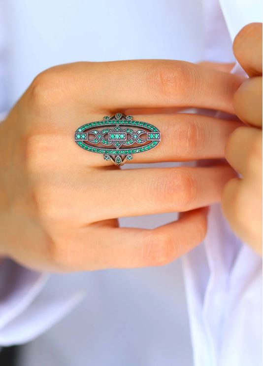 Bague marquise en argent 925 de style Art Déco. La bague Hortense est inspirée d’un héritage venant de la maman de la créatrice. Elle allie douceur et caractère.